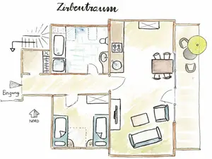 Die großzügig geschnittene 2 Zimmer-Wohnung "Zirbentraum" liegt im 1. Obergeschoss und wurde 2020 hochwertig renoviert und im modernen Stil eingerichtet. Das Thema "Zirbe" zieht sich durch alle Räume. Die Zirbe ist eine Kiefernart und duftet angenehm würzig. Die ätherischen Öle sollen zur Entspannung und erholsamen Schlaf beitragen. Der große Wohn-/Essbereich lädt zum Verweilen und die breite Loggia lädt zu einem gemütlichen sonnigen Frühstück ein.Das moderne Bad mit Dusche, Badewanne und WC sorgt für einen angenehmen Start in den Tag.