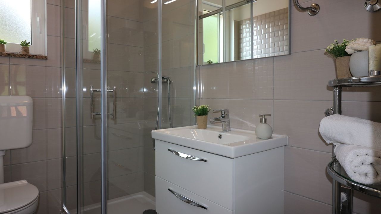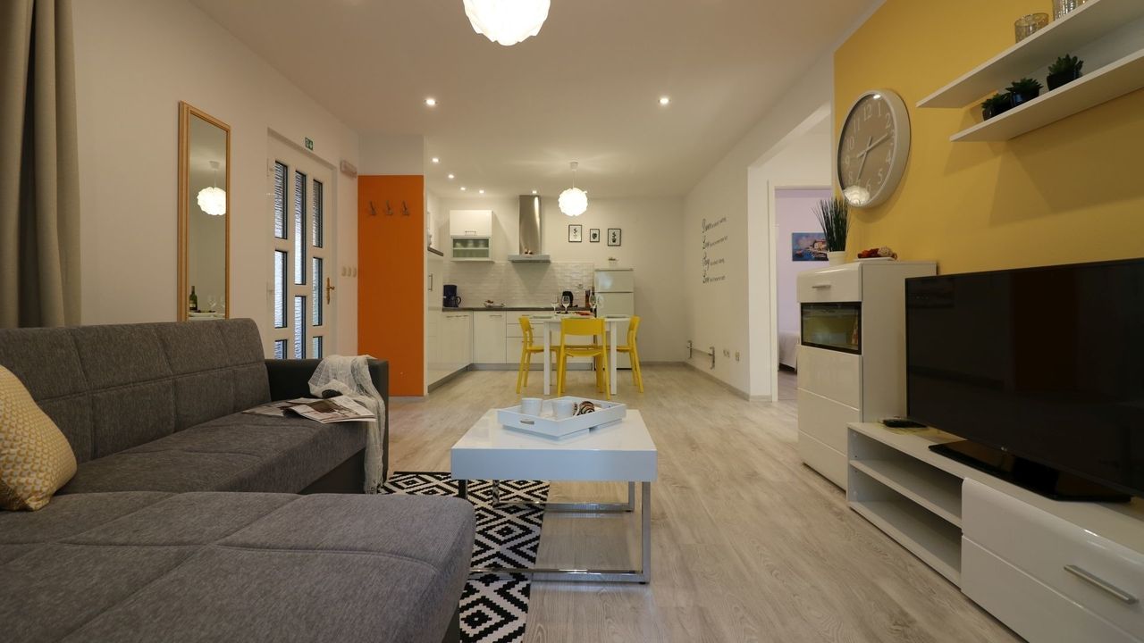 Herzlich willkommen in unserer barrierefreien 58-qm-Wohnungen mit Terrasse und Garten !Unsere schöne Ferienwohnunganlage liegt im Porec . Sie ist eine vorzügliche Basis für genussreiche Aktivitäten in dieser tollen Region. Für kulinarisch bzw. önologisch orientierte Menschen stellt der Landstrich im Kreis Südliche Weinstraße das reinste Paradies dar. Weingüter ohne Ende und tolle Restaurants auf der Kuste und in Hinterland Istrien freuen sich auf Sie. Und wenn Sie sich zwischen all den Genüssen mal körperlich betätigen wollen, dann locken wunderschöne Wanderwege und Radstrecken in den Weinbergen und Kustenentlang.