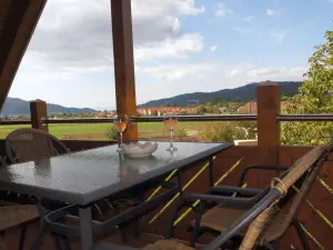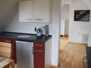 Sie kommen als Paar oder kleine Familie? Dann genießen Sie Ihre Zeit in unserer gemütlichen Dachgeschosswohnung. Im Schlafzimmer steht ein französisches Bett von dem man durch das Dachfenster die Sterne zählen kann, eine weitere Person kann auf der Couch schlafen. Die Wohn-Küche ist mit einem großen Tisch und Spülmaschine, Backofen und Kaffee-Espressomaschine ausgestattet. Im Wohnzimmer steht ein gemütliches Sofa und ein TV. Auf dem Balkon genießen Sie die Abendsonne und den Blick in die Ferne. Handtücher, Bettwäsche und ein kostenfreier Internetzugang sind im Preis inklusive.Beschreibung der Unterkunft