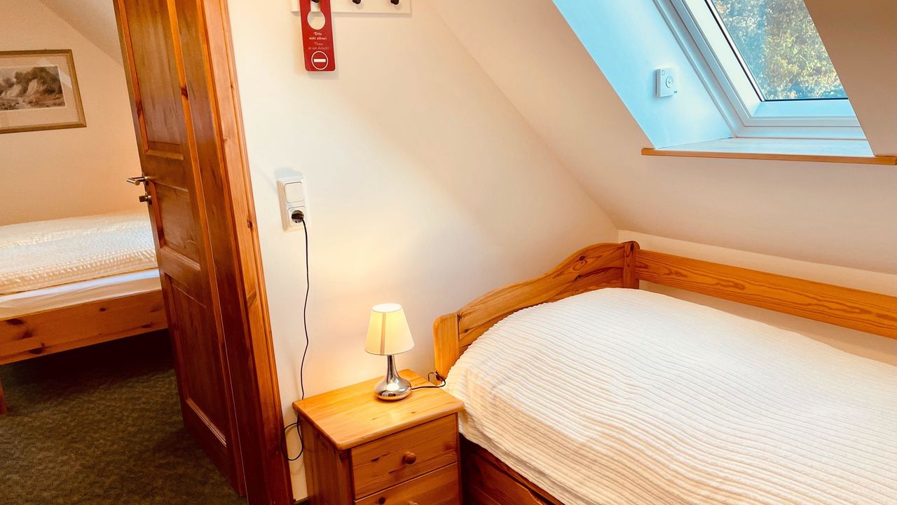 Hier gibt es für Großfamilien ein weiteres Kinderzimmer ( ca. 12 qm ) mit zwei Einzelbetten.