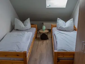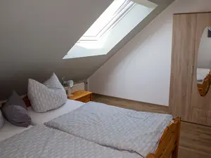 Unsere Dachgeschosswohnung hat 3 Schlafräume mit 6 Betten, ein geräumiges Wohnzimmer, eine voll eingerichtete Wohnküche sowie ein ein Bad mit Wanne, Dusche und 2 WC. Freies W-LAN sowie SAT-TV und Radio sind vorhanden.Im Außenbereich befindet sich für unsere Gäste ein Pavillon mit Sitzgelegenheit. Ein abschließbarer Abstellraum mit Lademöglichkeit für E-Bikes kann genutzt werden. KFZ- Stellplätze vor dem Haus gibt es reichlich, sowie einen Stellplatz mit Carport. Für nasse Wanderschuhe und Kleidung befindet sich im Keller ein Trockenraum.