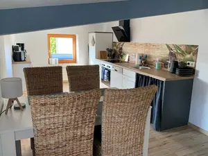 Sie können sich ihre Mahlzeiten, in der voll ausgestatteten Küche mit Kochfeld, Ofen, Geschirrspüler, Kaffeemaschine, Toaster, Milchaufschäumer, Wasser,-u. Eierkocher selbst zubereiten. Die Unterkunft verfügt weiterhin über ein Wohnzimmer mit einem Sofa und einem Flachbild-Sat-TV, sowie ein eigenes Bad mit DU-WC und einem Haartrockner. Im Schlafzimmer steht Ihnen ein großes Doppelbett und ein offenes Kleiderschranksystem zur Verfügung.