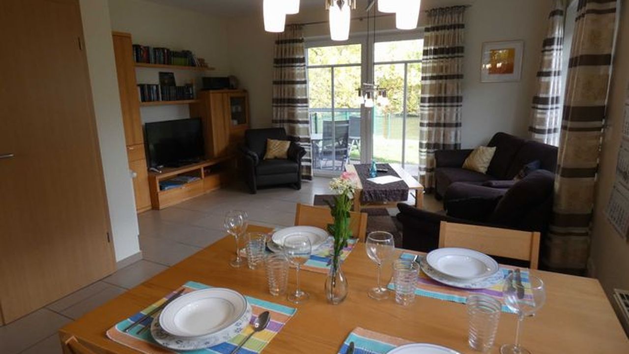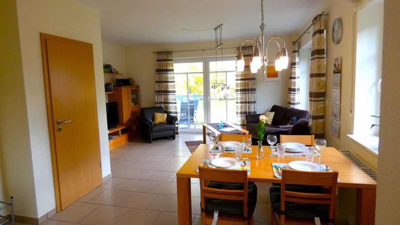 • Wohn- Esszimmer (Sitzecke, Esstisch, Kinderhochsitz, LED-HD-Sat-Fernseher, Stereo-System Radio, CD, iPhone-Dock)