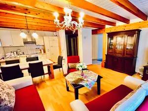 Wohnung in der ersten Etage ca. 86 qm, sichtbare Balken, großes Wohnzimmer, 3 Schlafzimmer, komplette Küche mit Geschirrspüler, Wannen-und Dusch-Bad, Gäste-WC, Parkett und Fliesen, teilw. Fußbodenheizung, große Terrasse, W-Lan, TV.Beschreibung der Unterkunft
