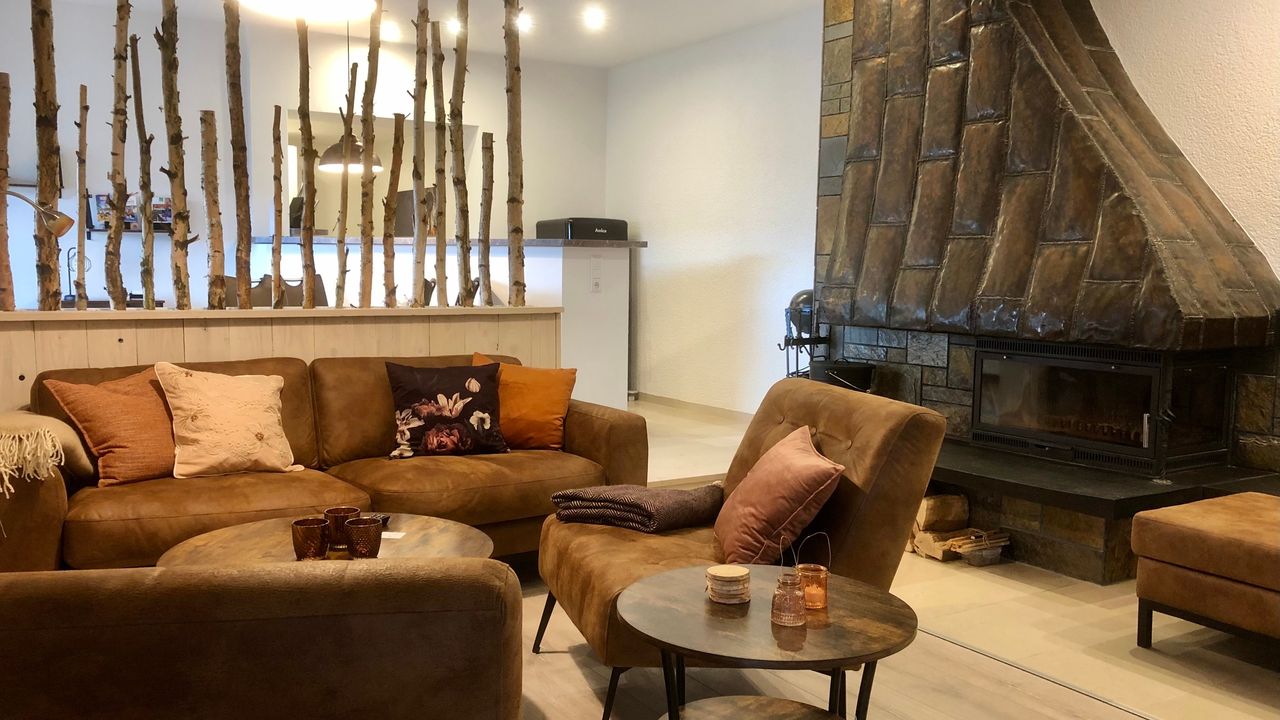 Der offene Kamin verbreitet eine behagliche Wärme für entspannte Stunden. Das Brennholz erhalten Sie von uns kostenlos hinzu.