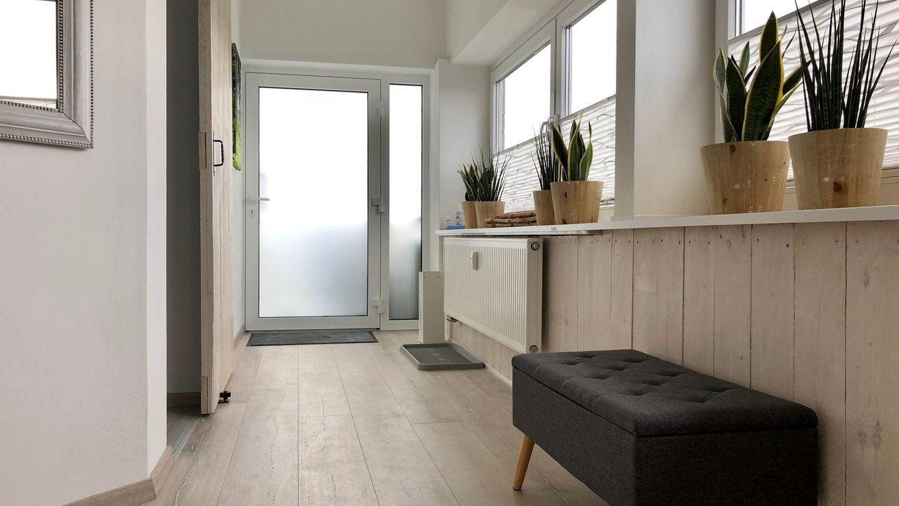 Der im Obergeschoß gelegene, separate Wohnungszugang ist über eine Außentreppe erreichbar.