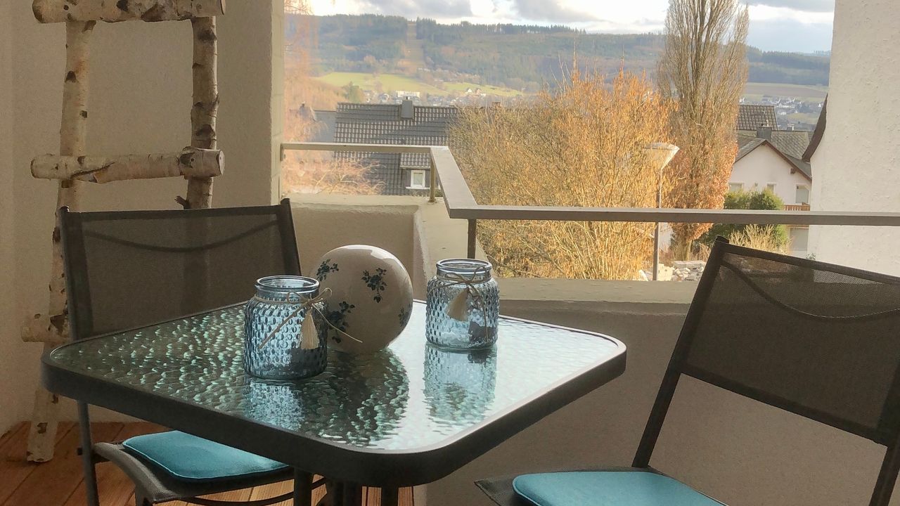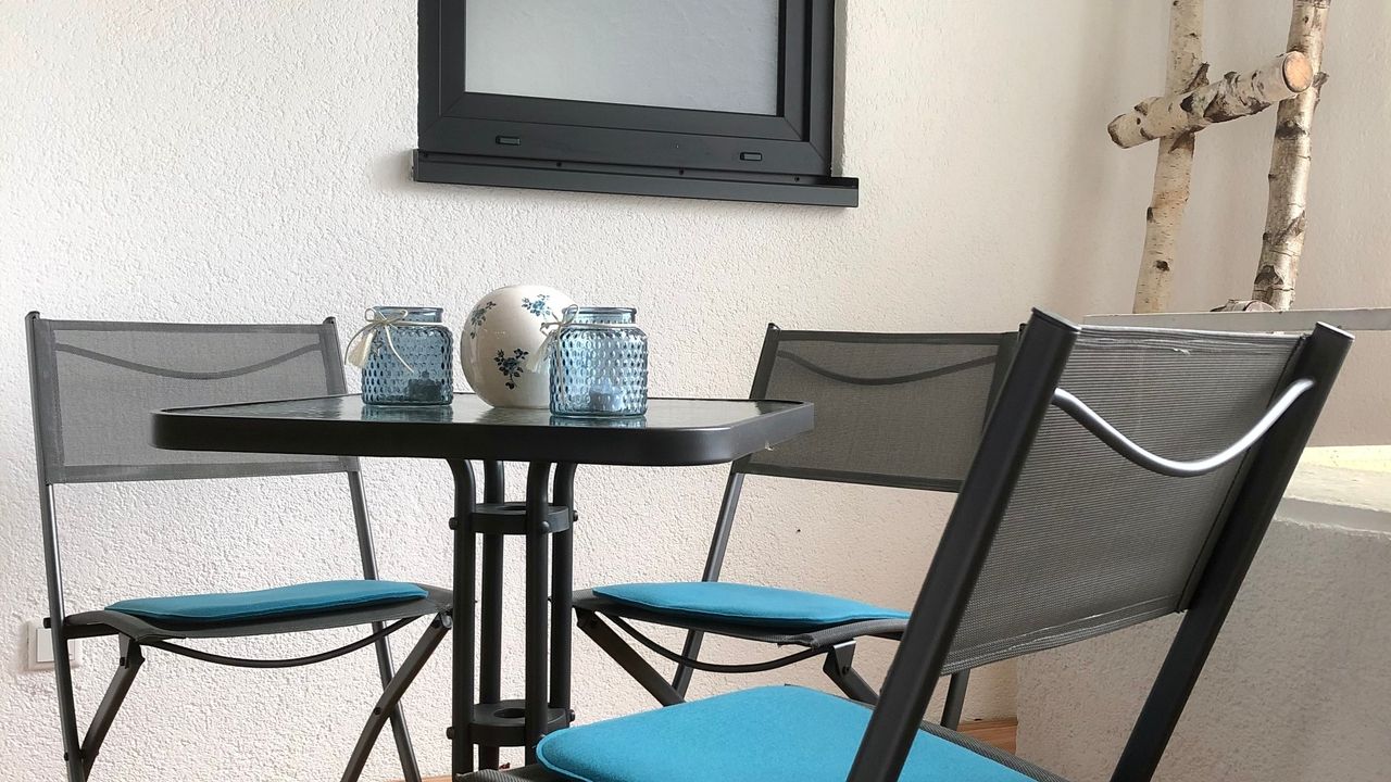 Frühstücken Sie in der Morgensonne auf Ihrem eigenen geschützten Südbalkon.
