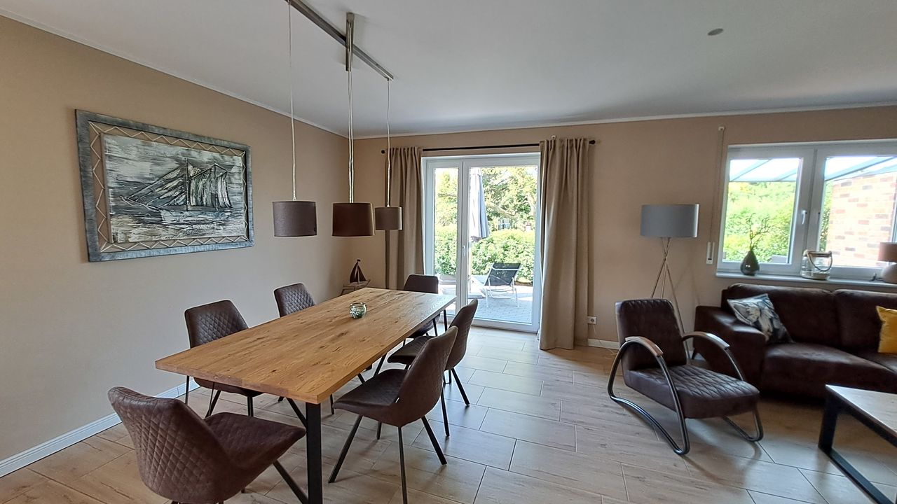 In 2020 neu errichtetes, modernes Ferienhaus in ruhiger Sackgassenlage. In der geräumigen Doppelhaushälfte im Landhausstil finden auf ca. 110m² bis zu 6 Personen genügend Platz.Das Wattn Huus 1 verfügt im Erdgeschoss über einen geräumigen Wohn/ Essbereich mit direktem Zugang zur überdachten Terrasse. Eine hochwertig offen gehaltene Küche lädt zum Kochen und Genießen ein.