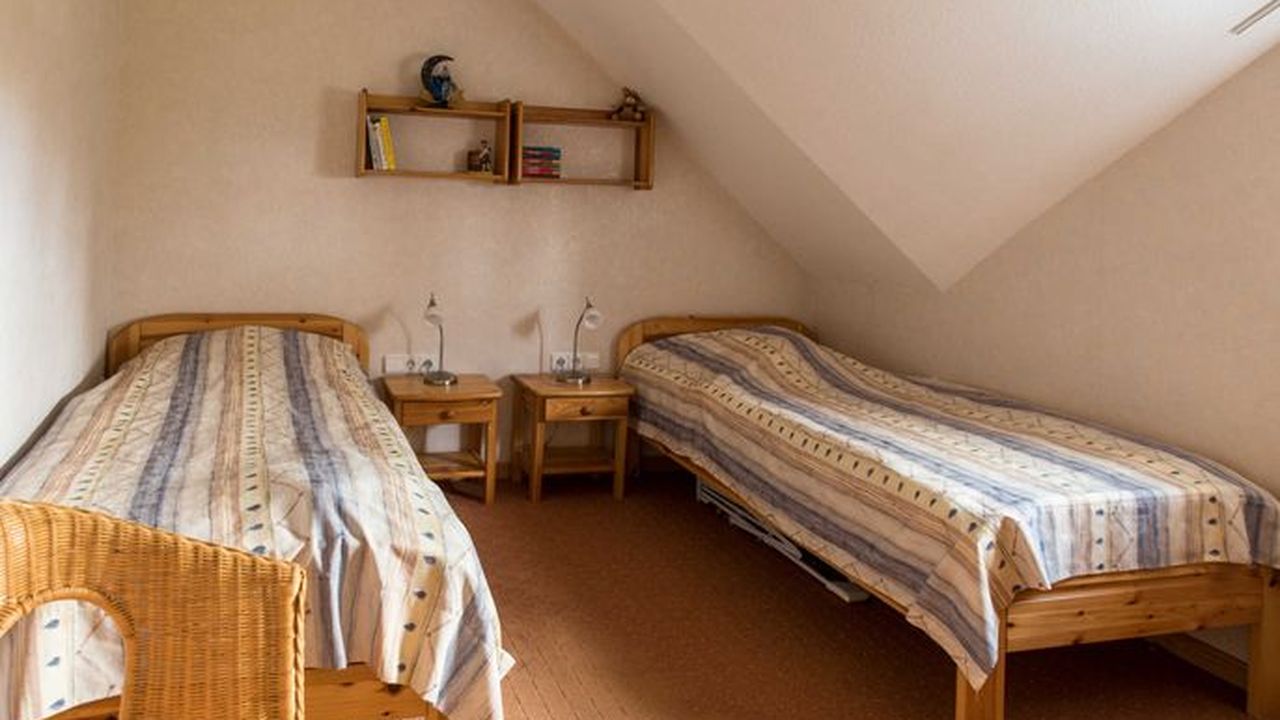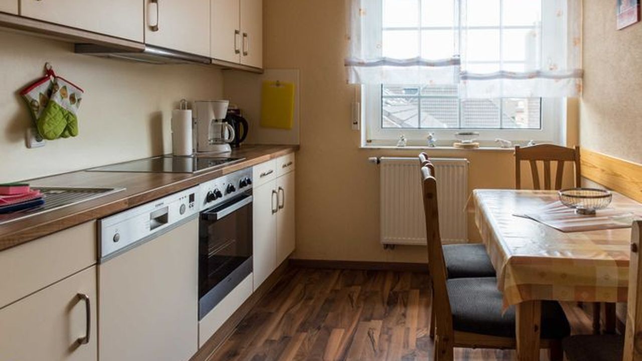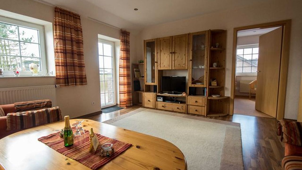 Die Ferienwohnung hat eine Größe von 65 qm und besteht aus einem Wohnzimmer, zwei Schlafzimmen, einer Küche, einem Bad (Dusche/WC) und Balkon. Alle Räume sind mittels Türen verschließbar und über eine Diele zu erreichen.