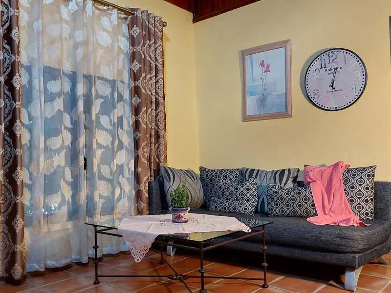 Die im modernen Stil eingerichtete Ferienwohnung liegt im ersten Stockwerk direkt zur Landstraße auf nahezu Straßenniveau (Vierfachverglasung). Der Wohnbereich verfügt über eine große moderne und voll ausgestattete Küche (inkl. Mikrowelle), eine Esstheke sowie ein bequemes Sofa. Das Schlafzimmer ist mit einem 150 cm großen französichen Bett ausgestattet. Das direkt anschließende Badezimmer hat eine Dusche. Der Flachbildfernseher verfügt über Satellitenempfang mit ca. 450 internationalen Sendern- darunter alle frei empfangbaren deutschen Kanäle - sowie durch Umschalten auf der Fernbedienung über DVB-T-Empfang mit den gängigen spanischen Fernsehsendern. Zudem kann auf Anfrage kostenlos Netflix bereitgestellt werden. Unser Haus verfügt über Internetanschluss per Glasfaser und in allen Unterkünften sowie auf der Dachterrasse steht sehr gut funktionierendes W-LAN zur kostenlosen Verfügung. Der geringe Preis erklärt sich durch die Lage zur Straße, durch die Lärmbelästigungen nicht ausgeschlossen werden können. Für lärmempfindliche Menschen ist dieses Apartment nicht geeignet.Das Ferienwohnungshaus "Apartamentos Monasterio de San Antonio" ist ein sehr schönes, über 200 Jahre altes ehemaliges Klostergebäude mit typischem Innenhof, verwinkelten Treppen und einer großen Gemeinschafts-Sonnenterrasse mit herrlichem Blick auf den Atlantik und das Gebirge. Es ist ein gutes Beispiel kanarischer Baukunst. Bei der vollständigen Restaurierung im Jahr 1996 wurden Ursprünglichkeit und der Charme des Hauses vollständig erhalten. In diesem Jahr begann auch die touristische Vermietung der ersten Ferienwohnungen. Die meist jungen internationalen Gäste nutzen die Apartamentos Monasterio de San Antonio gerne als idealen Ausgangspunkt für Mountainbike- oder Wandertouren sowie für Ausflüge in die vielfältigen Regionen der Insel.