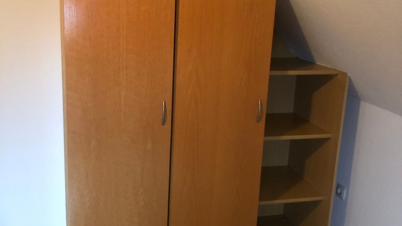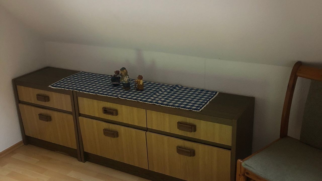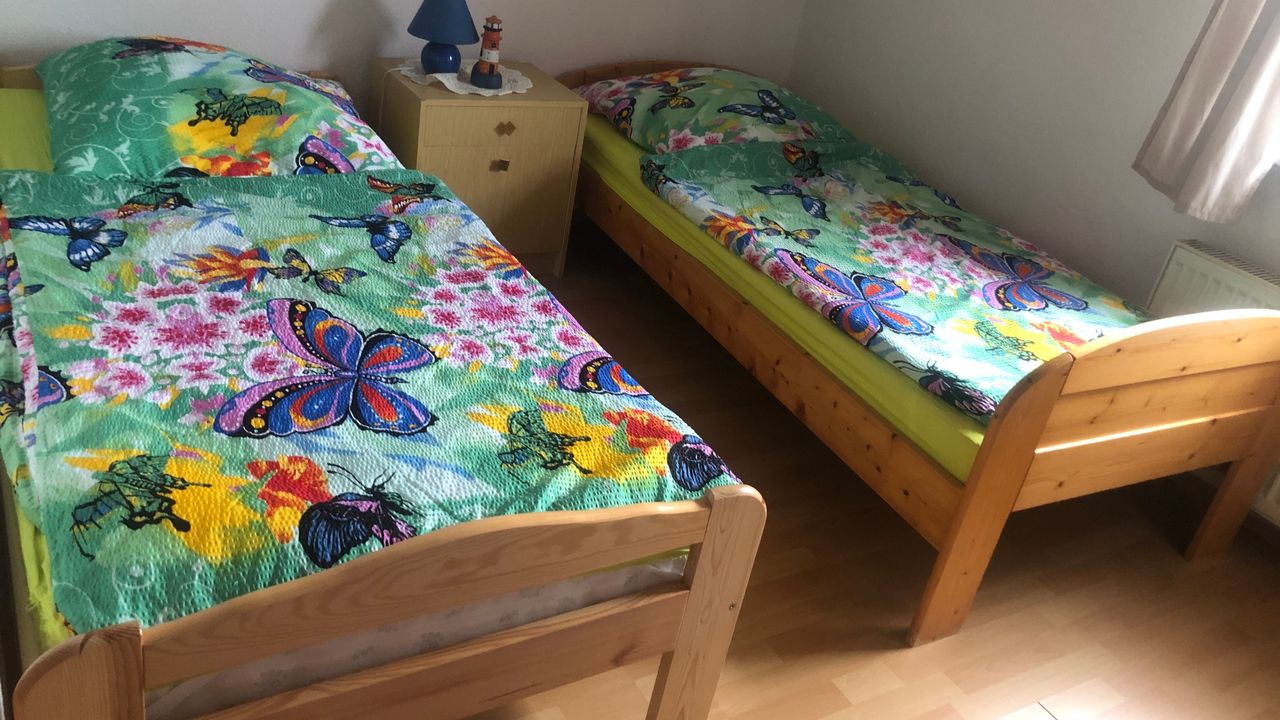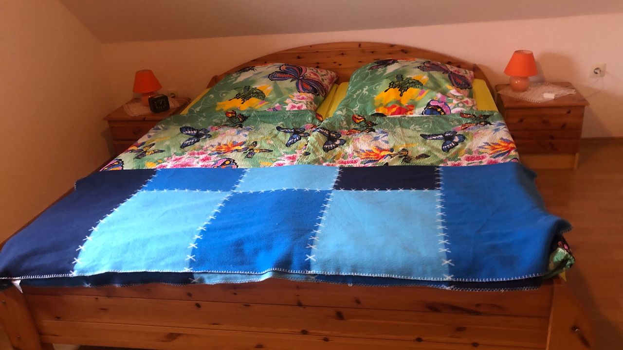 Im Obergeschoß des Hauses befinden sich 2 geräumige Schlafzimmer (Doppelzimmer mit Kinderbett, 3-Bett-Zimmer).