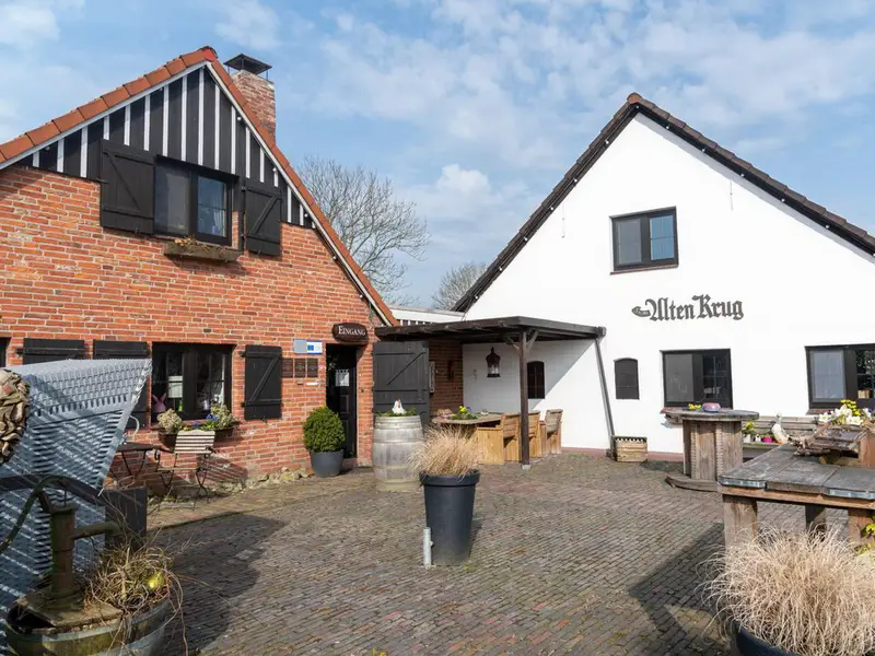 Das historische Landhotel"Zum Alten Krug", eines der ältesten Gasthäuser im weiten Umkreis, bietet Ihnen individuell eingerichtete Zimmer und Ferienwohnungen. Es ist ruhig aber zentral an der L 810 zwischen Hooksiel und Horumersiel gelegen und nur wenige Minuten von den Badestränden an der Nordsee entfernt. Größere Städte wie Jever oder Wilhelmshaven sind circa 20 Autominuten entfernt. Die Unterkunft bietet Ihnen neben gemütlichen Zimmer oder Ferienwohnungen ein Frühstücksraum, Garten mit Sitzmöglichkeit und Essbereich im Freien. Ein gut sortierter Getränkekühlschrank steht im Gästehaus bereit, Getränke gegen Gebühr. Wir servieren Ihnen im Landhotel ausgezeichnete Weine vom Weingut Josef Jaeckel aus dem Weingebiet der Nahe. WLAN steht Ihnen zur Verfügung. Möchten Sie Ihr Haustier mitbringen kontaktieren Sie uns bitte vor der Buchung, da wir sonst gegebenenfalls Ihren kleinen oder großen Liebling nicht unterbringen können.Sonstiges