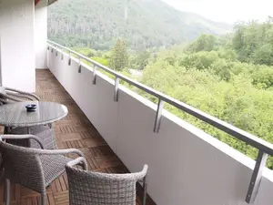 Sie möchten noch die Abendstimmung genießen? Kein Problem auf dem nach Süden ausgerichteten Balkon. Hier finden Sie einen kleinen Tisch und 4 Stühle zum verweilen.