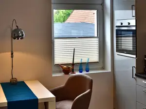Ihre Unterkunft verfügt über ein Schlafzimmer mit Boxpringbett (180x200cm), Kleiderschrank und Fernseher. Die Wohnküche ist ausgestattet mit Induktionsherd (2 Platten), Backofen, Kühlschrank mit Gefrierfach, Spülmaschine, Kaffeemaschine, Toaster, Wasserkocher, Esstisch und Sofa. Das Badezimmer verfügt über Dusche, WC, Waschbecken, Föhn und Fenster. Der Balkon bietet eine gemütliche Sitzmöglichkeit mit Tisch und Stühlen.Beschreibung der Unterkunft