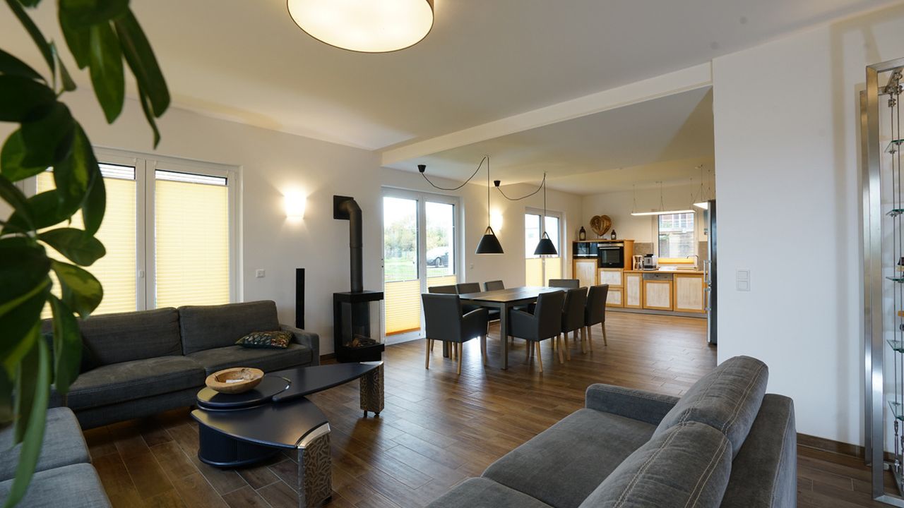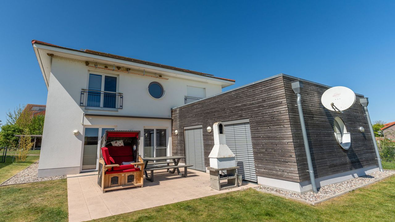 Alle Schlafzimmer sind mit Fernsehern ausgestattet, und Sie können Ihre Lieblingsmusik entweder über den TV oder per Bluetooth über Boxen abspielen. Die Sitzgruppen im Innenbereich sowie auf der großzügigen Terrasse bieten Platz für bis zu 8 Personen. Eine große Markise schützt vor Sonne und Regen, während die Strandkörbe und Sitze draußen für Urlaubsfeeling sorgen.