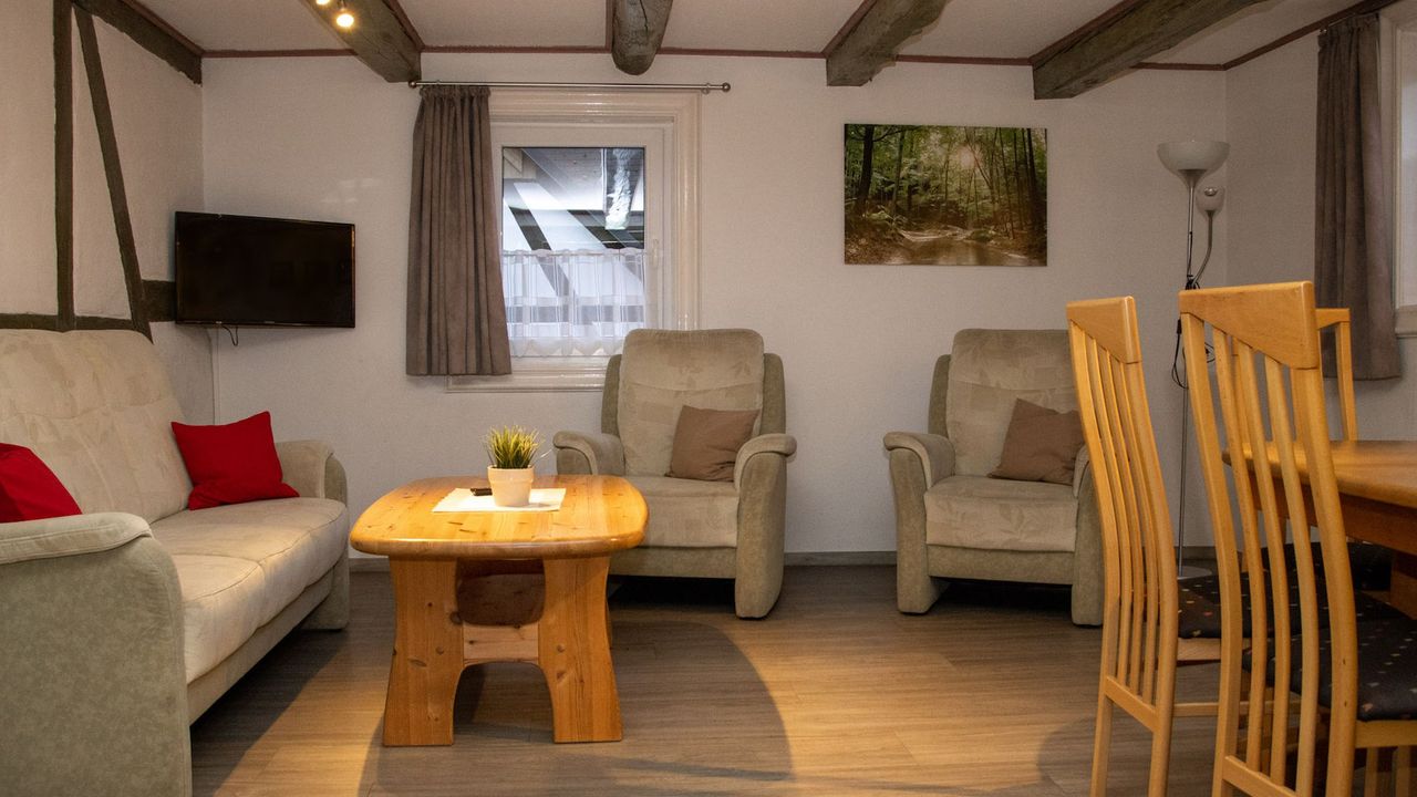 Diese Ferienwohnung verfügt über 65qm. Zur Ausstattung gehören: 4 Personen, 2 Doppelzimmer, 1 Schlafcouch, Wohnraum, Küche mit Essecke, Dusche/WC. Einzeln und ruhig gelegener Bauernhof in direkter Nähe zum Hennesee mit modern eingerichteten Ferienwohnungen im Sauerländer Fachwerkstil. Alle Ferienwohnungen und Ferienhäuser sind ausgestattet mit DU/WC, separater Küche, Wohnraum mit Sitz- und Essecke, Kabel-TV-Anschluss.Beschreibung der Unterkunft