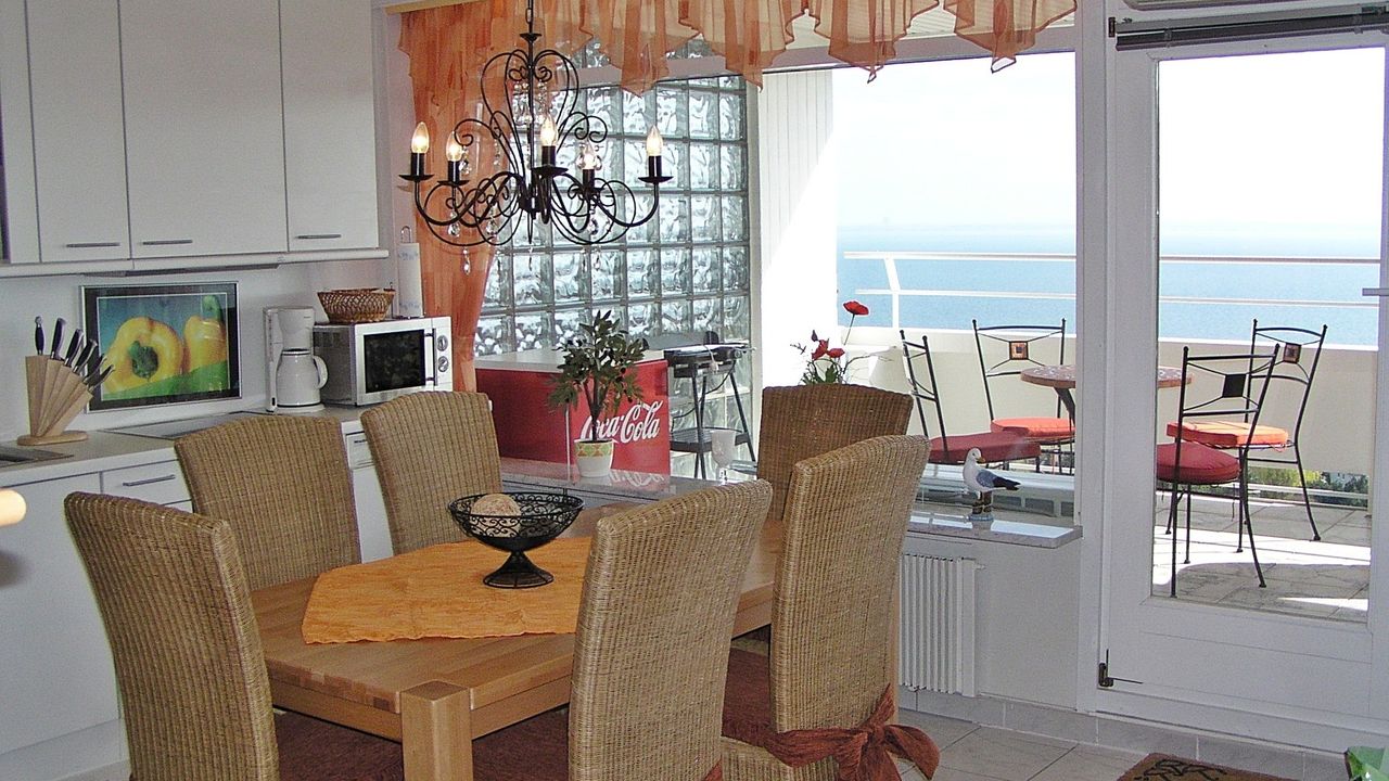 EINIGE AUSSTATTUNGSDETAILS NOCH EINMAL IN DER ZUSAMMENFASSUNG:Eigener Strandkorb und 2 Fahrräder inklusive !!! Fahrstuhl im Haus. Kinderhochstuhl/Kinderreisebett auf Anfrage. Hochwertig und gemütlich eingerichtete Penthouse-Wohnung mit u.a. Flur, zwei kleinen, separaten Schlafzimmern, großem Wohn-/Esszimmer mit Panoramablick auf die Ostsee, modern und komplett ausgestatteter Miele-Küche mit u.a. Wasch- & Geschirrspülmaschine und Mikrowelle, kleiner separater Abstellraum, verschiedene Bücher, Spiele und DVDs, mehrere TV-Geräte, DVD-Player, Videorekorder und Stereoanlage sowie elegantem Marmor-Badezimmer mit Regendusche, Handtuchheizung und Fön. Außerdem steht Ihnen eine riesige, gut möblierte Süd-Terrasse, Kaminofen (mit Ethanolfeuerung) und integriertem Wintergarten zur Verfügung. Direkt auf dem Grundstück Ihrer Urlaubsunterkunft befinden sich außerdem ein Tennisplatz, ein Basketballfeld und ein Kinderspielplatz.