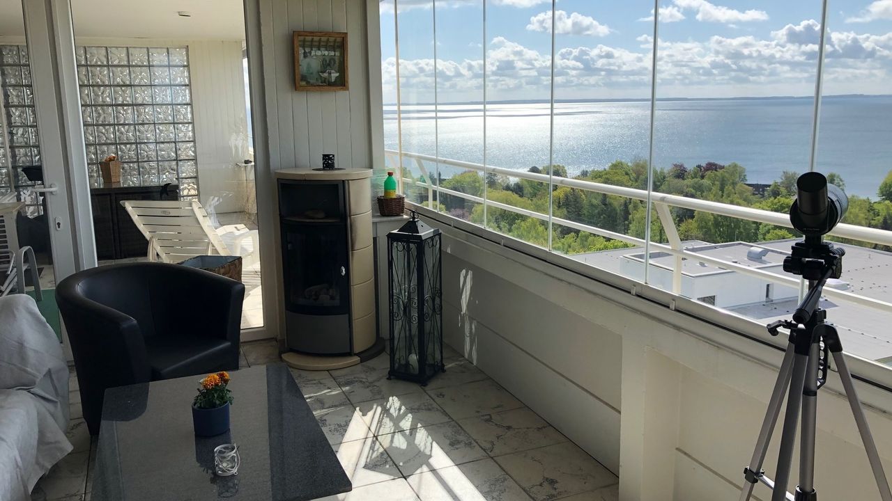 Damit Sie die herrliche „Meerblick-Atmosphäre“ auch in den Abendstunden und während der 'ungemütlicheren' Monate genießen können, haben wir unsere Penthouse-Terrasse zur Hälfte mit Glaselementen versehen. Sie haben also die Wahl, ob Sie sich lieber im Freien von warmen Sonnenstrahlen auf einer Liege bräunen lassen oder ein paar erholsame Stunden auf unserem Relax-/Massagesessel im geschlossenen Wintergarten vor dem Kaminfeuer verbringen möchten. Da die Terrasse nach Süden gerichtet ist, können Sie die Sonne auf Ihrer eigenen, ganz privaten 'Dachterrasse' mit einer größtmöglichen Privatsphäre genießen - fernab von neugierigen Blicken. Der traumhafte Blick reicht von Sierksdorf über Haffkrug, Scharbeutz und Timmendorf bis nach Lübeck-Travemünde. Bei guter Sicht können Sie sogar die Küste Mecklenburg-Vorpommerns sehen. Unser Romantik-Tipp: Besonders romantisch ist es, den Tag bei einem Glas Wein in unserem Wintergarten ausklingen zu lassen und die herrlich erleuchtete See zu erleben! Abends können Sie dann den Blick über das Meer und die elegant beleuchteten Seebrücken der Nachbarostseebäder schweifen lassen!