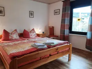 Das Ferienhaus steht auf dem Wohngrundstück des Vermieters in einer Gartenlage.