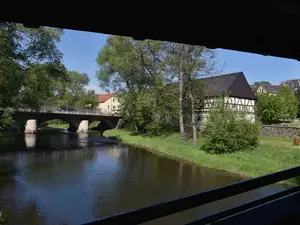 Die Ferienwohnung liegt verkehrsgünstig. In der Nähe befinden sich Bäcker, Supermarkt, Gasthof, Bushaltestelle und ein Geldautomat. Bis zum Bahnhof ist es ca. 1 km.