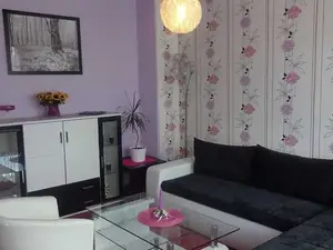 Die Wohnung (100m²) hat zwei Schlafzimmer, Wohnzimmer mit Sat - TV, Zimmer mit Balkon, Bad mit Dusche, Wanne, Waschmaschine und WC. Die Küche ist komplett eingerichtet, Geschirr, Tisch- und Bettwäsche, sowie Handtücher stehen selbstverständlich zur Verfügung.Für kleine Gäste sind Kinderbett/ Kinderstuhl vorhanden.