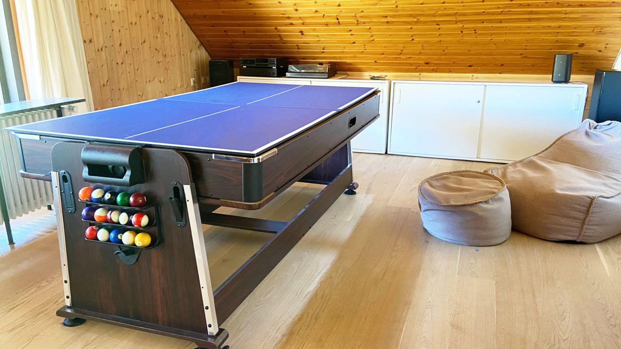 - Schlafzimmer 5 /Jugendzimmer (für 2 Personen): großer Multifunktionstisch mit Billard, Tischtennis und vielem mehr, Kamin, 2 Schlafsofas, Zugang zum Balkon, viele Gesellschaftsspiele