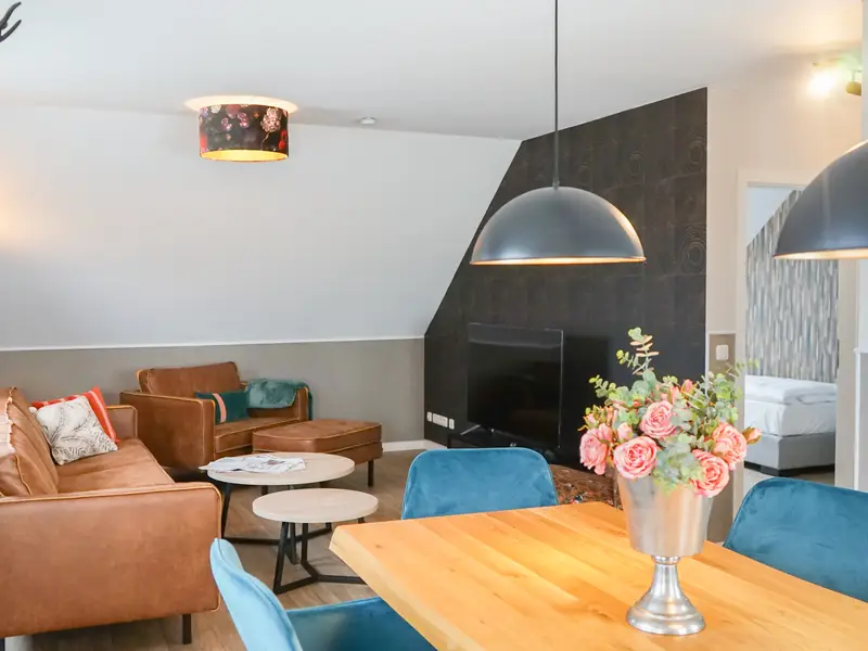 Herzlich Willkommen in der zauberhaften Ferienwohnung BucheDie Wohnung Buche ist 72 m² groß und befindet sich zudem im Dachgeschoß. Auf 2 Schlafzimmer, einem Badezimmer und einem Wohnbereich mit Küchenzeile vereinen sich stilvoll moderne Deko Elemente. Hier können bis zu 4 Personen übernachten. Die Terrasse hinter dem Haus können Sie außerdem sehr gern nutzen.