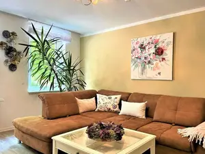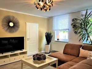 Die geschmackvoll eingerichtete Ferienwohnung besticht mit harmonisch aufeinander abgestimmten Farben. Das Wohnzimmer besitzt ein großes gemütliches Ecksofa sowie ein großen TV-Flachbildschirm. Im Schlafzimmer steht Gästen ein Doppelbett und ein zusätzlicher Fernseher zur Verfügung. Die helle separate Küche ist voll ausgestattet mit vielen Annehmlichkeiten, die den Aufenthalt sehr erleichtern. Im hellen Badezimmer finden Gäste eine Dusche sowie eine Badewanne vor. Weiterhin gibt es einen kleinen Balkon, der mit Balkonmöbeln ausgestattet ist und der an warmen Sommerabenden zum Verweilen einlädt.Sonstiges