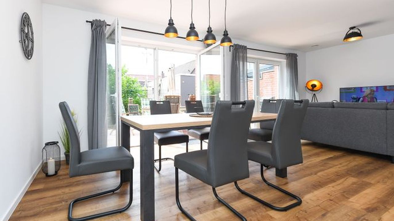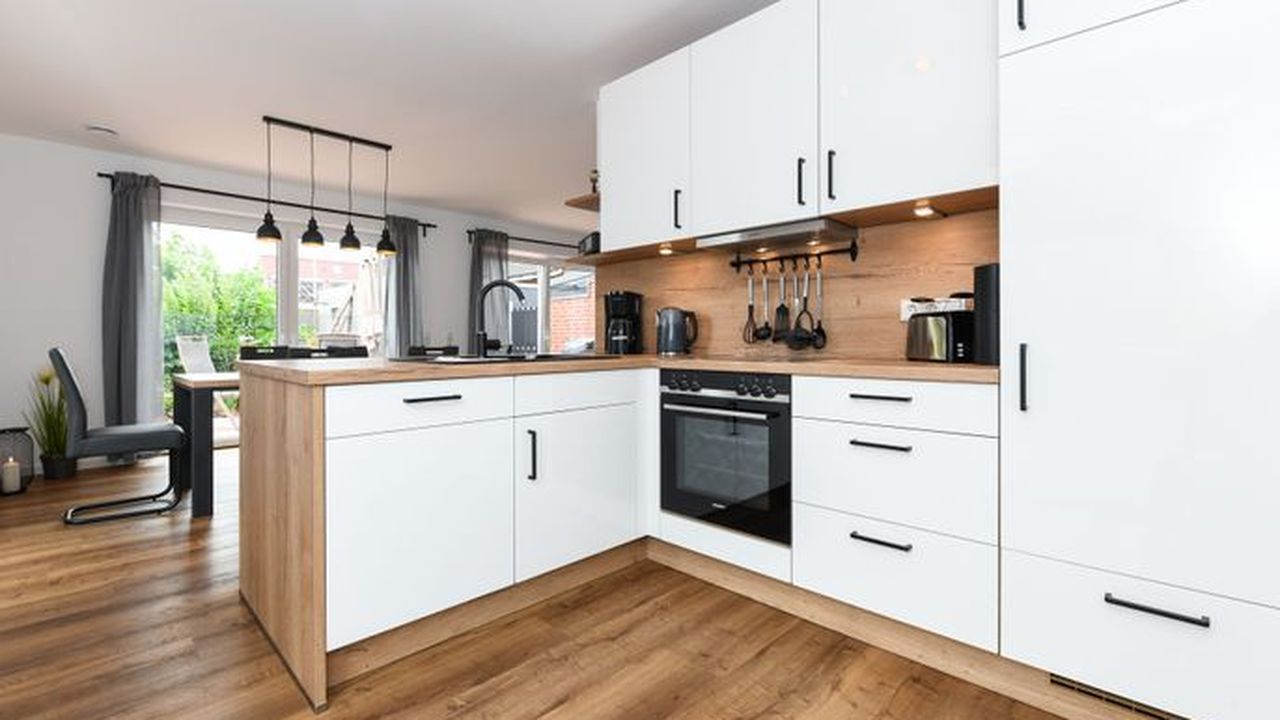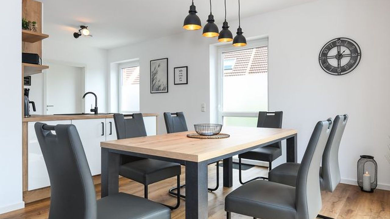 Das Ferienhaus ist modern-gemütlich, hell und freundlich gestaltet und eingerichtet sowie äußerst hochwertig mit viel Liebe zum Detail ausgestattet. Es verfügt zum Beispiel eine Terrasse, über eine ausgestattete moderne Küche mit Geschirrspülmaschine und Mikrowelle, und es stehen Waschmaschine und Wäschetrockner zum kostenlosen Benutzen bereit.