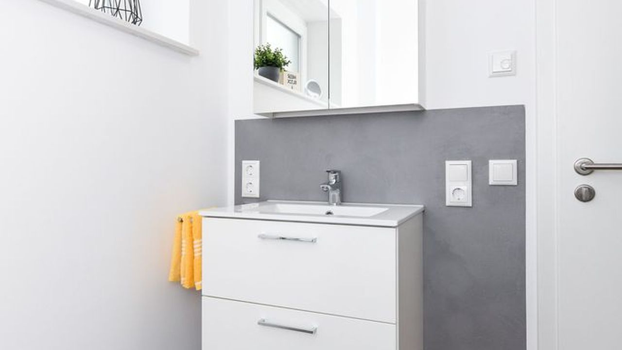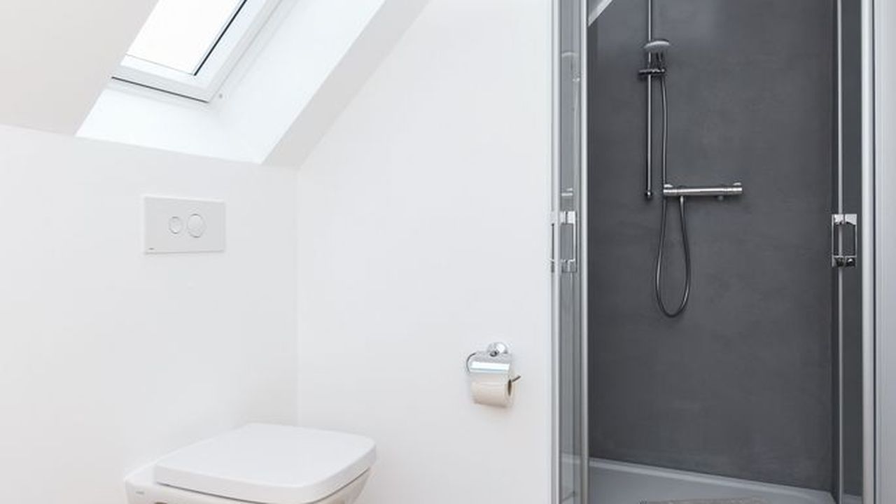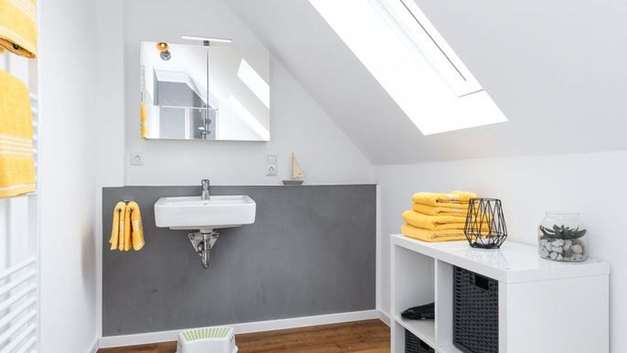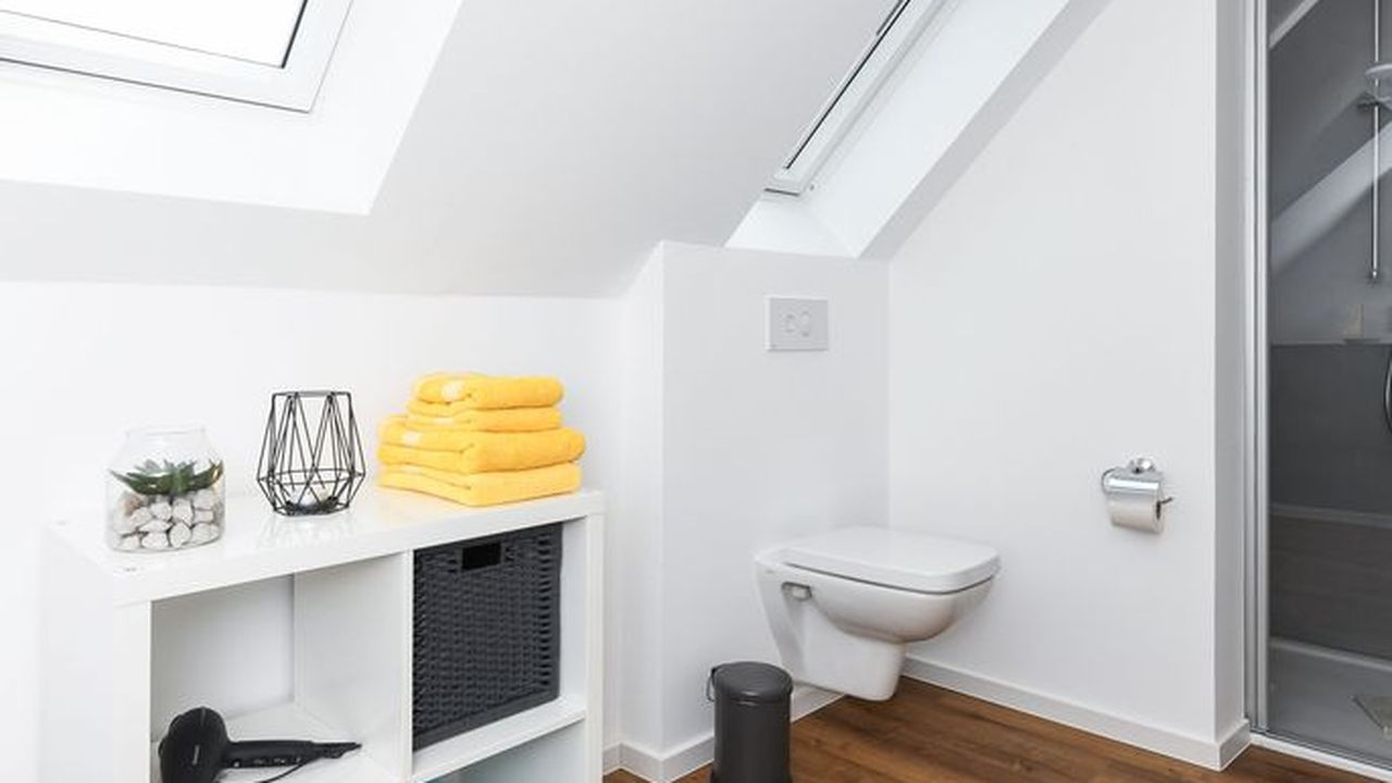 zweites Badezimmer mit Dusche, Waschtisch und WC
