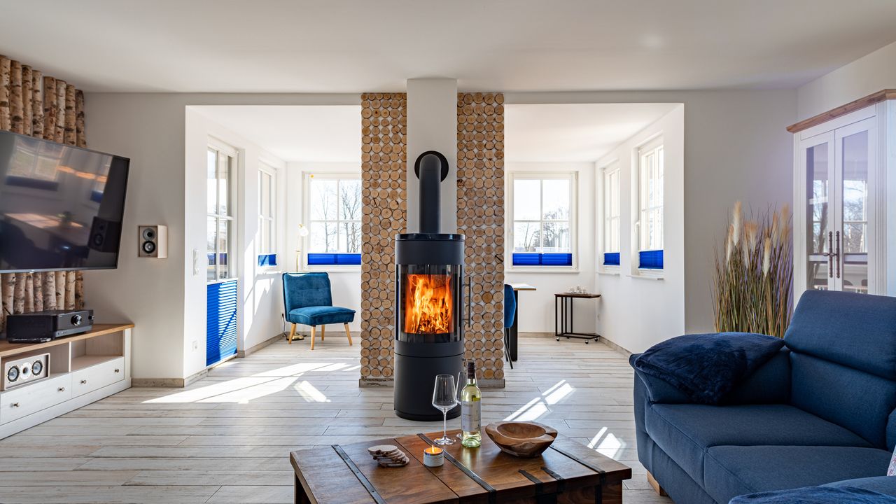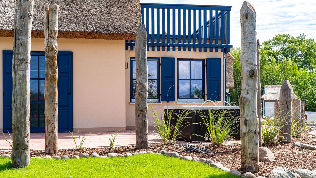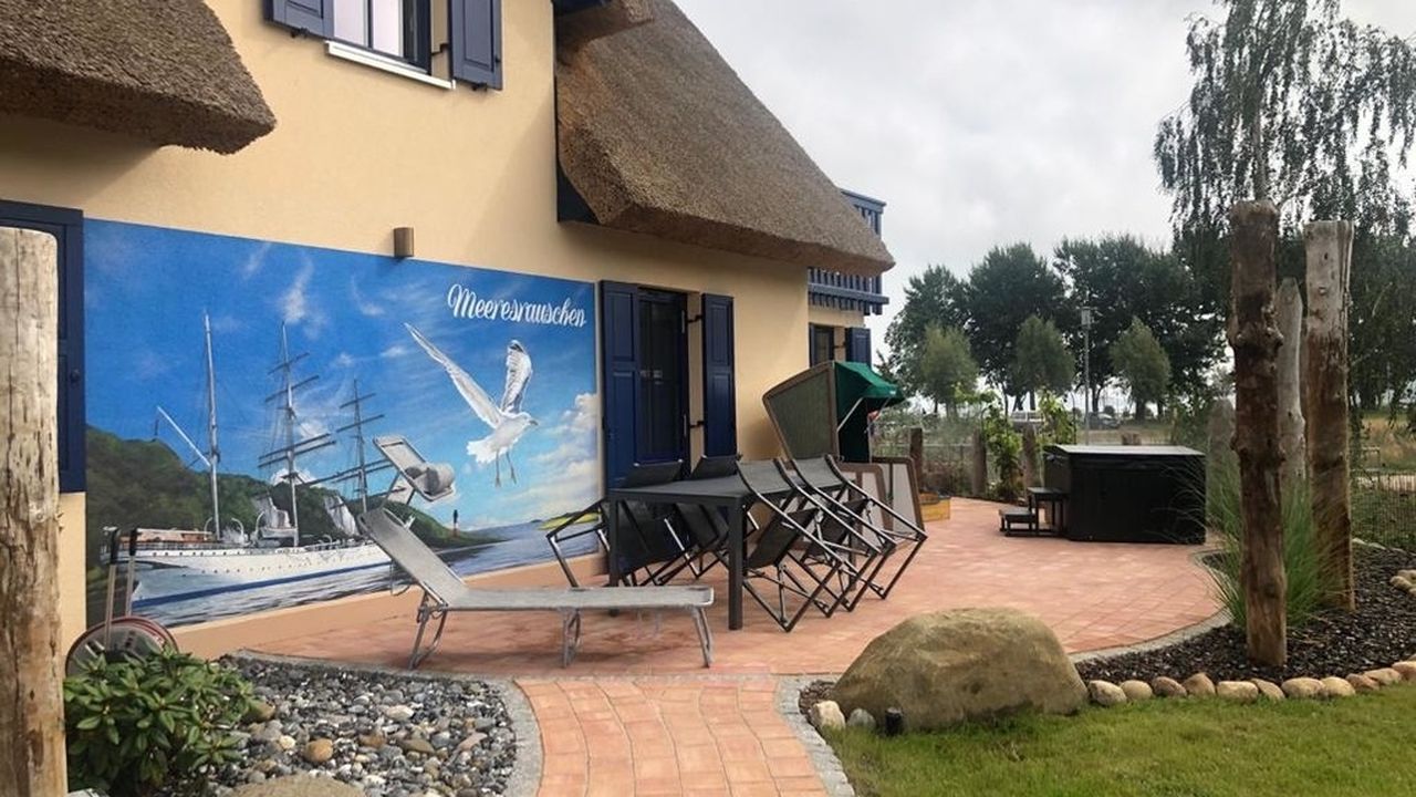 Reetdach-Ferienhaus, optional mit Außenwhirlpool, Sauna, Strandkorb, Kamin, Dachterrasse, Spielbereich für Kind u. Hund, Ladestation für E-AutosExklusives Reetdachhaus mit Sauna und Kaminofen, 2020 neu erbaut. Schöner Wasserblick von der Dachterrasse und dem Verandabereich. Nichtraucherhaus. Gehobene Ausstattung mit moderner, geschmackvoller Einrichtung. 2 Schlafzimmer, 2 Bäder. Kostenloser Internetzugang (W-Lan), Fußbodenheizung. Waschmaschine/Trockner. Terrasse mit Sitzmöbeln, Verandaterrasse, Elektrogrill, optional Nutzung Außenwhirlpool. 2 Pkw-Stellplätze am Haus mit Lademöglichkeit für E-Autos, Kinderspielecke.