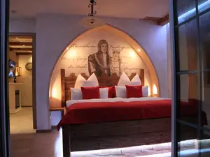 Willkommen im Mittelalter! Herzog Georg und Prinzessin Hedwig entführen Sie auf eine kulinarische Zeitreise in das 15. Jahrhundert. Denn im Jahr 1475 gaben sich Herzog Georg der Reiche und Prinzessin Hedwig von Polen, die Tochter des polnischen Königs Kasimir IV. und dessen Frau Elisabeth von Habsburg, das Ja-Wort und feierten standesgemäß ihre Hochzeit in der Herzogstadt Landshut. Die Hochzeit zwischen Georg und Hedwig war politisch von großer Bedeutung, denn in der Verbindung der beiden Geschlechter sah man ein starkes Bündnis gegen die Macht der Osmanen.Heute wird das historische Fest alle vier Jahre in Landshut aufgeführt, Europas größtes mittelalterliches Spektakel. Die rund 2.300 Darsteller sind Landshuter Bürger, denen die Nachstellung der Hochzeit in authentischen historischen Gewändern Freude macht – beispielsweise gehört es bei den männlichen und weiblichen Darstellern zur Tradition, sich die Haare nach mittelalterlichem Vorbild bis zur Veranstaltung lang wachsen zu lassen. Ein herausragendes Bauwerk ist in diesem Zusammenhang die Burg Trausnitz. Sie war Residenz der "Reichen Herzöge" von Bayern-Landshut und spielt auch im Hochzeits-Chalet eine zentrale Rolle.