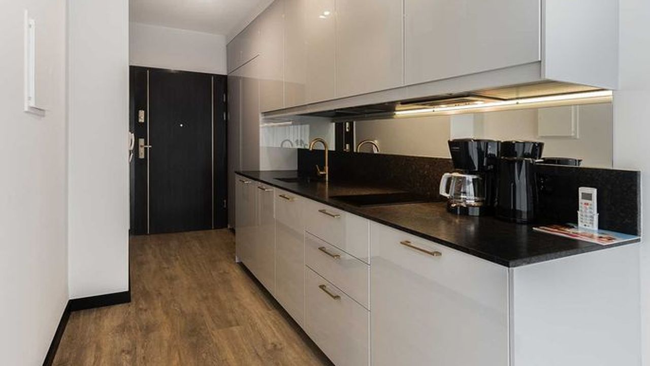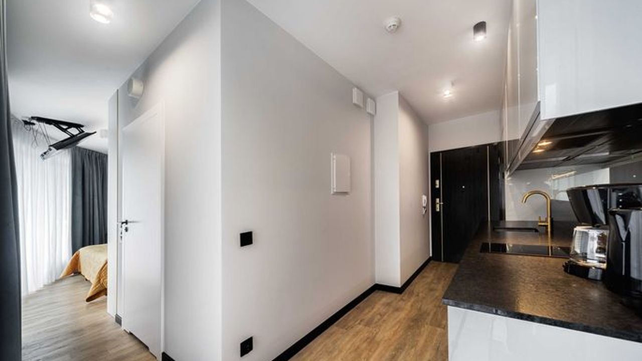 Das 28m2 große Apartment befindet sich im ersten Stock des Gebäudes LIVIDUS.Die Wohnung besteht aus einem Zimmer, welches die Funktion eines Schlaf- und Wohnzimmers hat, einer Kochnische und einem Badezimmer.
