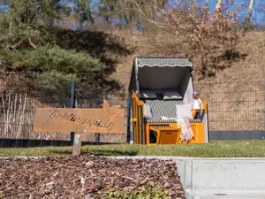 Vollständig eingezäuntes Grundstück mit 575 m², Strandkorb, große Sonnenliege
