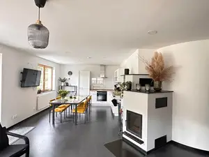 WOHN/ ESSBEREICH - Der großzügige Wohn- und Essbereich - gut ausgestattete Küche, Sofa, Esstisch für 8 Personen. Vom Essbereich gelangt man auf die tw. überdachte Terrasse in den Garten.