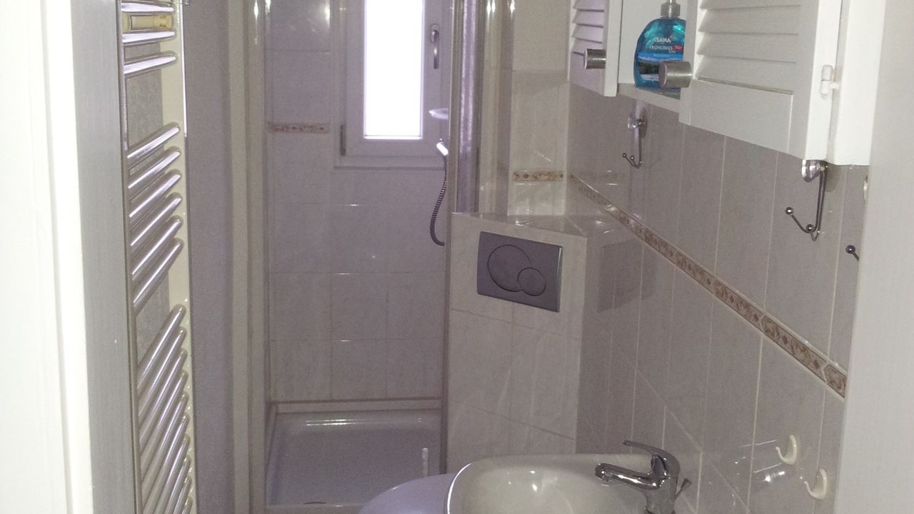 Das kleine Bad ist mit einem Fenster, einer Dusche , einem WC und einem kleinen Waschbecken ausgestattet. Handtücher bzw. Duschtücher stehen jedem Gast kostenlos zur Verfügung. Ein Haartrockner fehlt ebenfalls nicht.