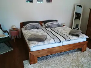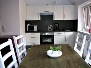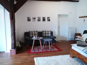 Genießen Sie die Ruhe des Landes in der Ferienwohnung für 2 Personen im ursprünglichen Bauernhaus.Klein, aber fein: Das gemütliche Apartment ist mit viel liebe zum Details im Landhausstil eingerichtet. Ein bequemes Sofa, ein Esstisch und eine vollausgestatte Küche bieten großen Komfort auf kleinem Raum. Das große, moderne Bett sowie eine Terrasse mit Blick in die Natur laden dazu ein, die Seele baumeln zu lassen.