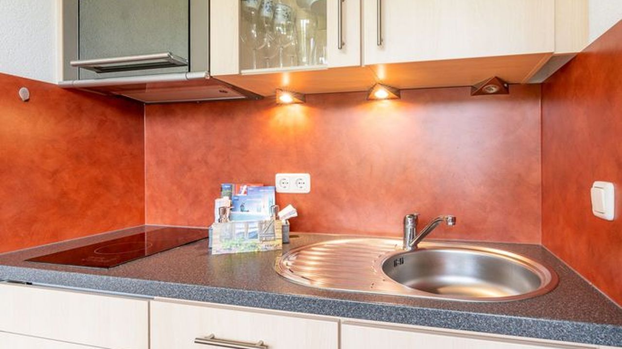 Diese schnuckelige Ferienwohnung, mit Schwimmbad im Haus, wird Ihnen gefallen. Die Ferienwohnung ist kpl. eingerichtet und verfügt über ein großes Bett für 2 Personen und eine ausziehbare Schlafcouch. Bei schönem Wetter können Sie auch auf dem sonnigen Balkon oder dem großen Garten die Seele baumeln und Tag Revue passieren lassen.Die Küche ist ebenfalls kpl. ausgestattet und bietet Platz für bis zu 4 Personen.