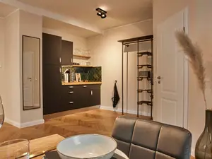 Mitten im Herzen der Fuldaer Altstadt in einem der ältesten Häuser der Barockstadt liegt das Loft 1540. Vier luxuriösen Boutiqueferienwohnung bieten den Feriengästen hier den optimalen Ausgangspunkt für ausgedehnte Stadtbummel oder die Erkundung der nahegelegenen Rhön. Die Designwohnungen sind zwischen 36qm und 92qm und verfügen alle über großzügige Bäder mit Rainshower-Dusche sowie große Boxspringbetten. Die Verbindung von Tradition und Moderne prägt die individuelle Atmosphäre im Loft 1540.Die Wohnung liegt im Erdgeschoss und verfügt über einen eigenen Eingang. Der großzügige Wohnschlafraum bietet genügend Raum für den gemütlichen Sitzbereich sowie das große Premium-Boxspringbett. Die offene Designküche ist -bis auf einen Ofen- voll ausgestattet und enthält neben Kühlschrank, Herd und Spülmaschine auch Gläser, Geschirr, Besteck, Weinöffner und alles Weitere was Sie für ein leckeres Frühstück oder ein gemeinsames Abendessen benötigen. Mit der Nespresso-Vertuo Machine inkl. einer kostenlosen Erstausstattung an Kapseln bereiten Sie am Morgen nach dem Aufstehen den perfekten Kaffee und am Nachmittag Ihren leckeren Espresso zu. Die Wohnung verfügt außerdem über kostenfreies WLAN einen 4K-LED-TV sowie einen hochwertigen Bluetooth-Lautsprecher.
