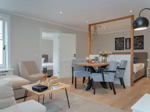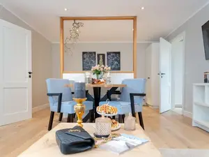 Herzlich willkommen in der charmanten Ferienwohnung „Stadtperle Gold“ – Ihrem stilvollen Zuhause mitten im Zentrum von Westerland auf Sylt! Auf 55 m² erwartet Sie ein liebevoll gestalteter Rückzugsort für bis zu 4 Personen, der Ihnen Komfort und Gemütlichkeit bietet.Das helle Schlafzimmer lädt zu erholsamen Nächten ein, während das großzügige Wohn-Schlafzimmer mit gemütlicher Sofaecke zum Entspannen einlädt. Die integrierte, moderne Küche ist bestens ausgestattet und macht das gemeinsame Kochen zu einem Vergnügen. Von der Nespresso-Maschine bis hin zur Spülmaschine ist alles vorhanden, was Sie für die Selbstversorgung benötigen.
