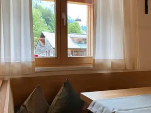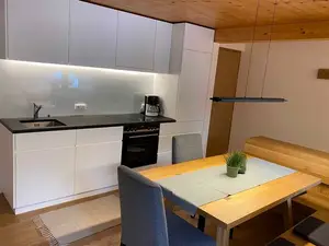 In der komplett neu renovierten (Mai 2022) Ferienwohnung befindet sich eine Garderobe, ein Doppelzimmer (mit Zugang zum Balkon), ein Doppelzimmer mit zusätzlichem Einzelbett, Bad (Dusche/WC) sowie eine gemütliche Wohnküche mit einladender Eckbank und Zugang zum Balkon.Unsere Wohnungen sind so ausgestattet, dass Sie weder Bettwäsche, Handtücher, Geschirrtücher etc. mitzubringen haben. Kinderbett wird auf Wunsch ebenfalls bereitgestellt. In der Küche gibt es eine Filterkaffeemaschine, einen Vierplattenherd mit Backofen und eine Geschirrspülmaschine, zwei SAT-TV Flachbild-Fernseher (Küche und Schlafzimmer) und GRATIS W-LAN.