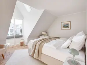 Dieses elegante Ferienhaus auf zwei Ebenen vereint Großzügigkeit, stilvolles Design und höchsten Komfort inmitten der charmanten Gassen von Wyk. Das Erdgeschoss besticht durch einen lichtdurchfluteten Wohn- und Essbereich, eine moderne Küche, einen Hauswirtschaftsraum sowie ein vielseitig nutzbares Arbeits- oder Lesezimmer. Ergänzt wird das Raumangebot durch ein geschmackvolles Duschbad mit WC.Im Obergeschoss erwartet Sie eine private Wellness-Oase mit Sauna und Badewanne, eingebettet in ein stilvolles Duschbad. Zudem stehen drei behagliche Schlafzimmer zur Verfügung zwei mit Doppelbetten, eines mit zwei Einzelbetten. Zwei der Schlafzimmer bieten direkten Zugang zu einem Balkon.