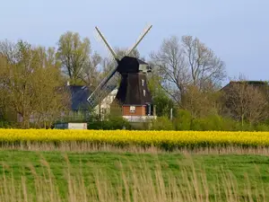 Verbringen Sie ihren Urlaub in einer echten Windmühle. 3 Schlafzimmer für 6 bis 8 Personen, eine riesige Wohnküche im Erdgeschoss, ein Wohnzimmer mit 360 Grad Rundumblick über die Felder und Wiesen und ein schöner Garten erwarten Sie.Umgeben von Viehweiden mit grasenden Schafen und Kühen liegt diese wunderschöne, historische Windmühle inmitten der schönen Nordseehalbinsel Eiderstedt - nahe St. Peter Ording mit einem der schönsten Sandstrände Schleswig-Holsteins. Es erwartet Sie ein absolutes Traumhaus! Erleben Sie hier den Wohnkomfort der besonderen Art - verteilt auf drei geschmackvoll ausgestatteten Ebenen! Genießen Sie die idyllische und ruhige Lage - abseits von Stress und Hektik. Mit einer Wohnfläche von 190 qm und drei separaten Schlafzimmern sowie einem zusätzlichen Alkoven - Schlafplatz im Wohnbereich - bietet die Mühle Catharina Platz für 6 - 8 Personen.