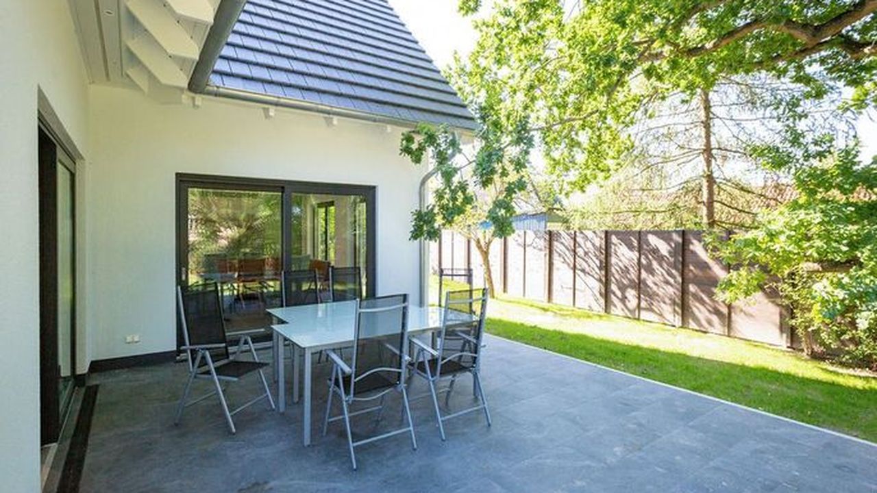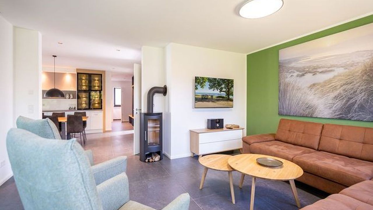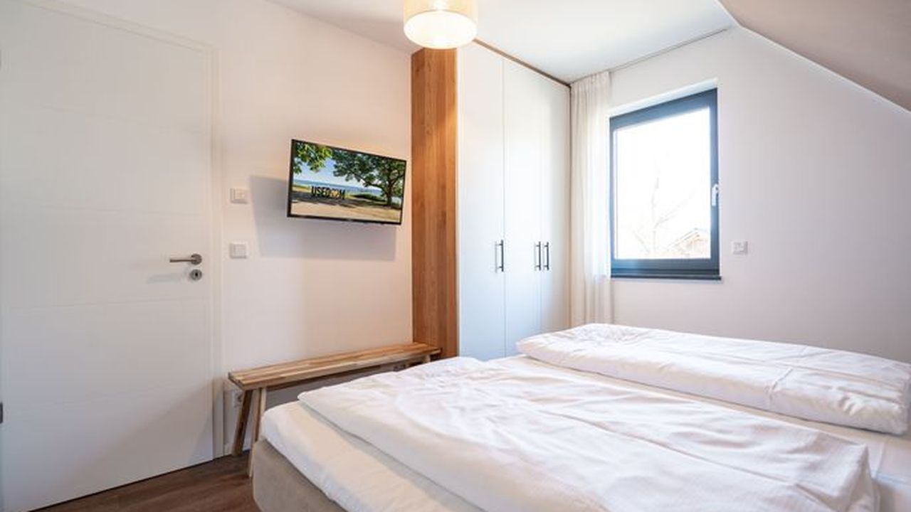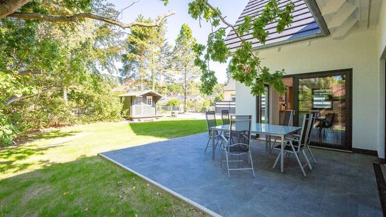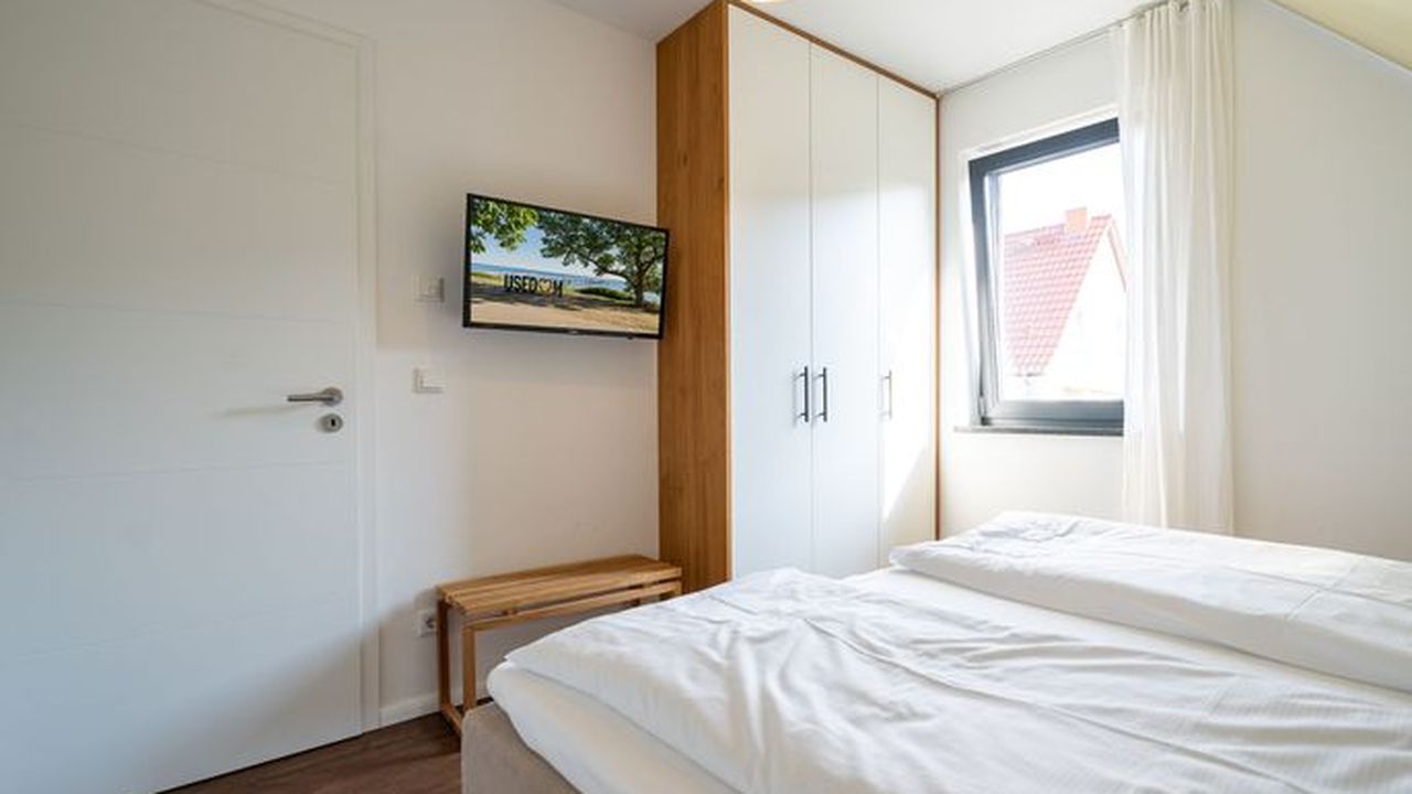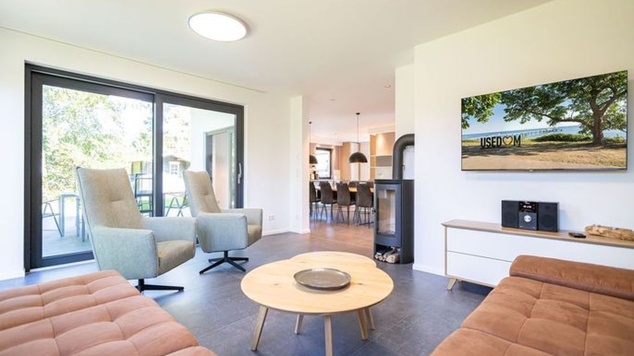 Gestalten Sie Ihren Urlaub ganz nach Ihren Wünschen in diesem großzügigen Feriendomizil. Auf insgesamt 224qm und drei Ebenen bietet das Ferienhaus ab Juni 2024 sogar Platz für bis zu 12 Personen und 2 Kleinkinder (bis 2 Jahre im Kinderreisebett). Ob Großfamilie oder Firmenevent - genießen Sie modernen Wohnkomfort und die Exklusivität Usedoms Steilküste in Ihrer direkten Umgebung zu haben (Entfernung 295m). Die ruhige Lage des Einfamilienhauses trägt darüber hinaus zu Entspannung und Erholung in Ihrem Urlaub bei. Im Erdgeschoss befindet sich der offene Wohnbereich mit großzügiger Wohnlandschaft und Design-Sesseln. Ein Kamin und ein 55 Zoll Flat-TV sorgen für entsprechende Gemütlichkeit an Ihren Urlaubsabenden. Der angrenzende Essbereich ist mit einem 3,60m langen Esstisch mit massiver Eichenplatte ausgestattet. Hier finden bis zu 12 Personen ausreichend Platz für gemeinsame Urlaubsstunden. Die modern und voll ausgestattete Küche mit Markengeräten (Backofen, Ceranfeld, Mikrowelle, Spülmaschine, Kühlschrank mit Gefrierfach, Mixer und Kleinküchengeräte) lässt keine Wünsche beim Zubereiten Ihrer Speisen offen. Von hier aus sowie über das Wohnzimmer gelangen Sie auf die 35qm große Terrasse mit ausreichend Sitzmöglichkeiten für Sie und Ihre Begleitpersonen. Ebenfalls zugehörig zum Erdgeschoss ist neben einem Hauswirtschaftsraum (ausgestattet mit einem Waschtrockner) ein Badezimmer mit WC und Finnischer Sauna (geeignet für 4-5 Personen) sowie ein separates Gäste-WC und ein Schlafzimmer mit Boxspringbett (1,80m x 2,00m). Im ersten Obergeschoss befinden sich 5 weitere Schlafzimmer, die alle mit komfortablen Boxspringbetten (1,80m x 2,00m), Schrank, elektrische Rolläden und Flat-TV ausgestattet sind. Auch zwei weitere Badezimmer mit Dusche, WC und Waschtisch gehören zum Komfort dieser Etage. Ein weiteres Wohnzimmer mit Sitzlandschaft und 55 Zoll Flat-TV bietet zudem die Möglichkeit sich in dieser Etage zurückzuziehen. Unter dem Dach (in der zweiten Etage) verbirgt sich ein weiteres Zimmer, dass sich als Spielzimmer eignet. Große Dachfenster und Dachschrägen sorgen hier für besondere Gemütlichkeit. Ein Highlight dieses Ferienhauses ist der 940qm große Garten. Neben einem Grill befindet sich auch ein abschließbares Gartenhaus auf dem Grundstück, dass Abstellmöglichkeiten für Fahrräder, Bollerwagen oder Kinderwagen bietet. Kostenfreies W-Lan, drei Safes und insgesamt drei PKW-Stellplätze direkt am Grundstück runden Ihren perfekten Urlaub in diesem Ferienhaus ab.Dieses 2021 fertig gestellte Einfamilienhaus überzeugt durch sein großzügiges Platzangebot. Auf insgesamt drei Ebenen finden Sie ab Juni 2024 nun 6 Schlafzimmer und 3 Bäder, deren Aufteilung sich besonders für Familien, befreundete Paare oder Firmenausflüge eignet. Der Ortskern (800m) sowie ein Bäcker (650m) sind fußläufig zu erreichen. Die Besonderheit dieses Ferienhauses liegt in der Nähe zu Usedoms Steilküste (295m), die zu jeder Jahreszeit ein beliebtes Ausflugsziel ist.