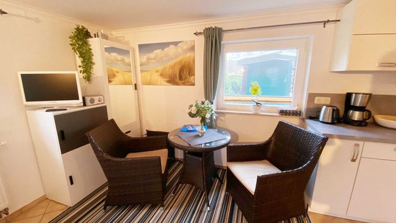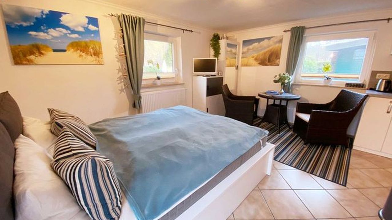 Meer oder Natur? Oder doch vielleicht einfach MeerNatur? Diese kleine Sommerlaube mitten in der Natur bietet ihnen beides. Nur 4 Minuten Fußweg und sie sind da wo andere Urlaub machen, am Strand.Diese gemütliche und modern eingerichtete 1-Raum-Wohnung mit ca. 25 m² Wohnfläche und einer sonnigen Terrasse kann mit bis zu 2 Personen genutzt werden. Ein großes Bett von 180x200cm bietet Ihnen Platz zum entspannen und verweilen. WLAN steht Ihnen hier kostenlos zu Verfügung.
