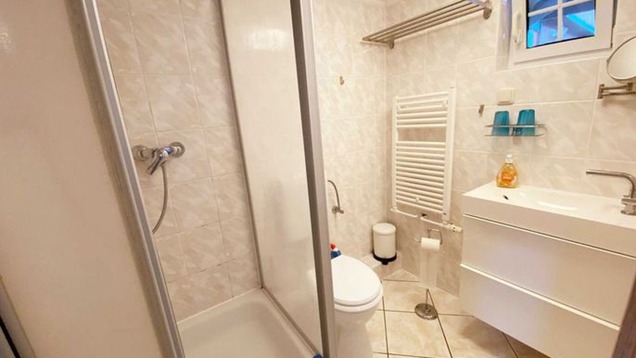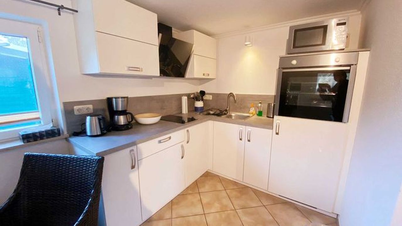 • Wohnraum: Im hellen und gemütlichen Wohnraum mit Küche und Essbereich findet man alles was es für den Urlaub braucht. Ein gemütliches Bett von 180x200cm, ein Flachbild-TV, Radio, Esstisch mit 2 Sessel und einer Küche eingerichtet mit Backofen, Ceranfeld mit zwei Platten, Mikrowelle, Kühlschrank mit Gefrierfach, Wasserkocher, Toaster und einer Kaffeemaschine.• Badezimmer: im kleinen aber feinen Badezimmer befindet sich eine Dusche, Toilette, Waschbecken mit Unterschrank und Handtuchhaken.