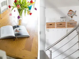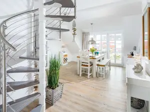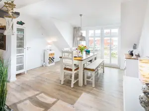 Die Strandperle Ney ist in einem Neubau mit 6 Wohneinheiten gelegen idyllisch [&] ruhig in der Nordhelmsiedlung. Strand, Bäcker, Supermarkt und Bushaltestelle sind nur einen Katzensprung entfernt. Die Maisonette-Wohnung ist 52 m² groß und für max. 4 Personen geeignet. Beide Schlafzimmer sind mit Doppelbetten, reichlich Stauraum und Flachbildfernsehern ausgestattet. Neben dem gemütlichen Essbereich (großer Tisch mit 4 Stühlen u. einer Bank) verfügt die Wohnung über eine hochwertig ausgestattete Küche mit einem Backofen/Mikrowellen-Kombigerät, Ceranfeld, Geschirrspüler, Toaster, Wasserkocher, Eierkocher, einer Nespresso-Kaffeemaschine mit Milchaufschäumer, sowie einer Kaffeefiltermaschine und einem Kühlschrank mit Gefrierfach. Eine Soundanlage mit iPhone-Dockingstation sorgt für die musikalische Untermalung beim Essen/ Kochen. Bei Sonnenschein kann man es sich auf dem gemütlichen Westbalkon bequem machen. Das Bad ist mit ebenerdiger Dusche, WC, Fön und einem Waschmaschinen/Trockner-Kombigerät ausgestattet.In der oberen Etage befindet sich das gemütliche Wohnzimmer mit Couch, 2 Sesseln [&] TV. [nbsp]Die Ferienwohnung ist mit Fussbodenheizung ausgestattet.