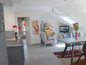 Genießen Sie in einer liebevoll eingerichteten 3-Zimmer-Ferienwohnung einen schönen und entspannten Urlaub. Die modern eingerichtete Wohnung verfügt über drei Zimmer und befindet sich im Dachgeschoss eines 3-Familien-Hauses in einem verkehrsberuhigten Wohngebiet (Zone 30) oberhalb Markdorfs Altstadt. Die Aussicht besticht bei gutem Wetter mit einem herrlichen Blick auf die Alpen und einer Teilseesicht auf den Bodensee.Das steht für Sie bereit: