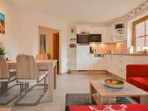 Die Ferienwohnung von Familie Starke im Ostseebad Dahme verfügt über ein Wohnschlafzimmer mit Schlafsofa, Couchtisch, Phonoschrank, integrierter Wohn-Küche und Esstisch der für bis zu 8 Personen ausgelegt ist.