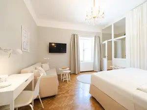 Die White Flat ist unsere neueste Ferienwohnung und wurde, mit viel Liebe zum Detail, von unserer Innenarchitektin eingerichtet. Das exklusive Apartment - ideal für Ihren Urlaub oder Ihre Geschäftsreise in Graz - bietet somit absoluten Chique und Gemütlichkeit auf allen Ebenen. Neben vollem Wohnkomfort haben Sie die Möglichkeit unseren 24-Stunden-Self-Checkin zu nutzen, lassen Sie sich von der hauseigenen Bäckerei das Frühstück versüßen und profitieren Sie von der idealen Lage unserer Appartements, die sich im Zentrum von Graz befinden.Unsere weiße Wohnung besticht durch einen großzügigen Vorraum, von dem man direkt ins Bad gelangt. Das Schlafzimmer bietet absoluten Komfort fast schon wie im Luxushotel. Die ruhige Lage Richtung Innenhof verspricht somit einen erhol- und geruhsamen Schlaf. Die im Erdgeschoss unseres Apartmenthauses gelegene Ferienwohnung ist vergittert und garantiert somit Sicherheit rund um die Uhr. Im Schlafzimmer findet man, neben dem luxuriösen und gemütlichen Doppelbett , zusätzlich noch ein bequemes, ausziehbares Schlafsofa . Ideal für den Aufenthalt mit Familie und Kindern.